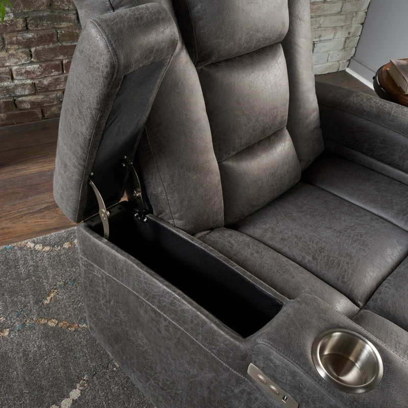 MULTI-FUNCTIONAL: This recliner includes two cup holders, a convenient USB port, and armrests with storage, making this the pinnacle of convenient functionality.
