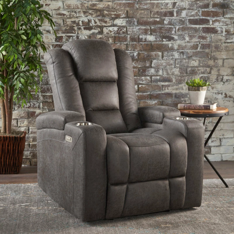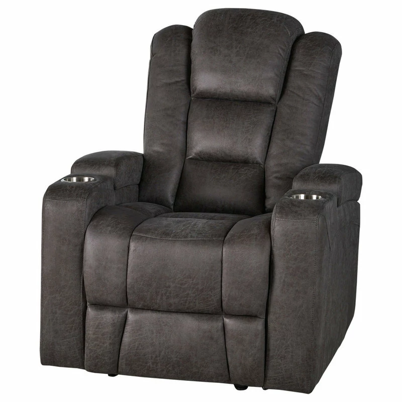 Our delightful motor-powered recliner chair provides an incredibly high degree of refreshment in a compact and attractive package, emphasizing a sophisticated and charming contemporary design. Featuring a plush tufted backrest, armrests with storage, an included USB port, and two cup holders, this recliner pairs perfectly with its convenient functionality allowing for high comfort with little effort. Sure to become the new favorite spot of leisure, you and your family will surely enjoy this recliner whenever you have a moment to unwind.