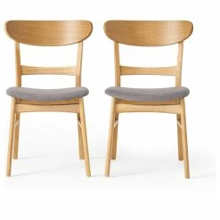 Mid-century modern design makes a stylish appearance in your dining room with these lovely dining chairs. These striking chairs feature soft, upholstered seats and beautifully-finished wood frames. Stunning curves and splayed legs bring even more intrigue and depth to the chic aesthetic. The combination of textures and colors adds dimension to any well-edited space. Fill your dining room with retro charm by pairing these bold and unique chairs with an equally charming dining table, a bold rug, and a coordinating sideboard.