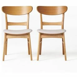 Mid-century modern design makes a stylish appearance in your dining room with these lovely dining chairs. These striking chairs feature soft, upholstered seats and beautifully-finished wood frames. Stunning curves and splayed legs bring even more intrigue and depth to the chic aesthetic. The combination of textures and colors adds dimension to any well-edited space. Fill your dining room with retro charm by pairing these bold and unique chairs with an equally charming dining table, a bold rug, and a coordinating sideboard.