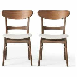 Mid-century modern design makes a stylish appearance in your dining room with these lovely dining chairs. These striking chairs feature soft, upholstered seats and beautifully-finished wood frames. Stunning curves and splayed legs bring even more intrigue and depth to the chic aesthetic. The combination of textures and colors adds dimension to any well-edited space. Fill your dining room with retro charm by pairing these bold and unique chairs with an equally charming dining table, a bold rug, and a coordinating sideboard.
