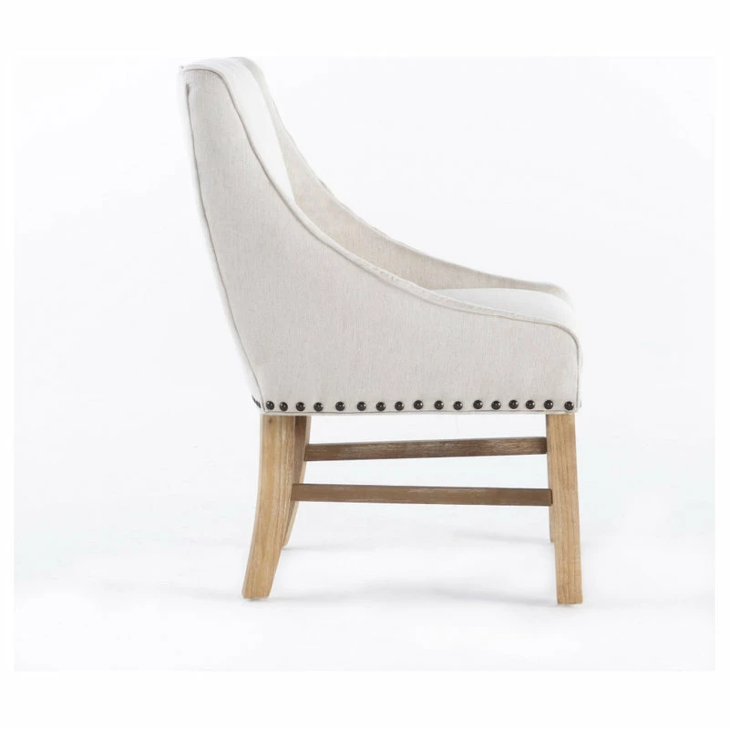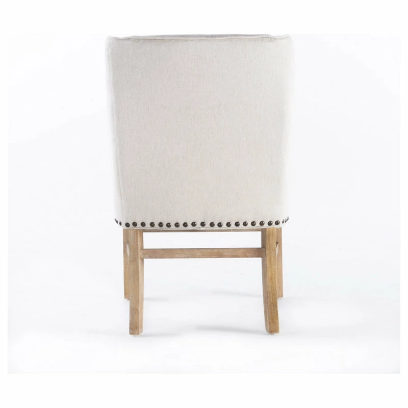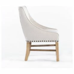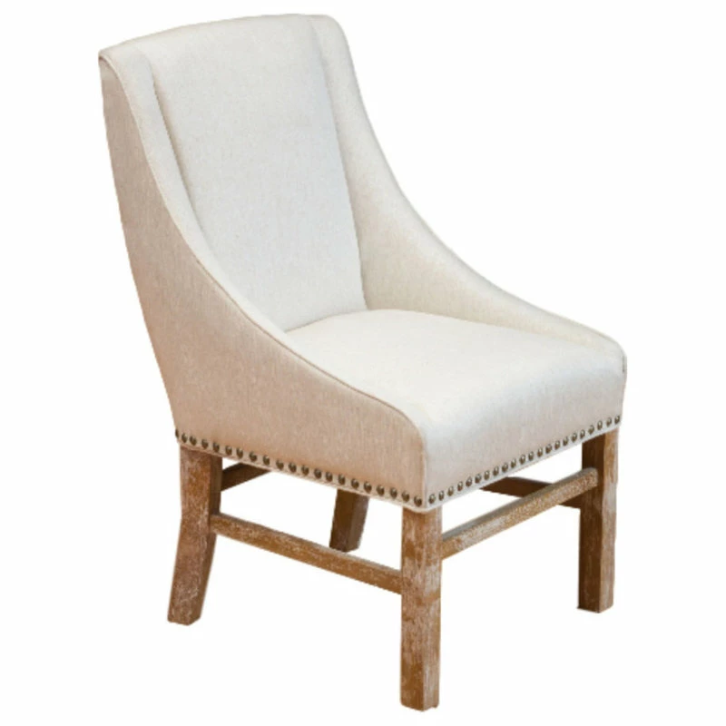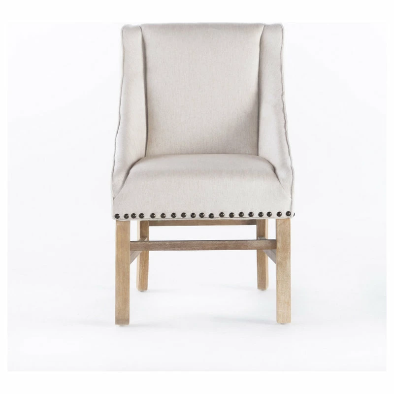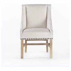 Our eye-catching dining chair is a versatile solution for any home, exceeding all of your needs in both stylish form and function. Featuring an exquisite studded trim, plush upholstered seating, and a sturdy wooden frame for outstanding durability, this chair uses a mix of materials to emphasize the overall contemporary style of the piece. Our refined dining chair is finished with gracefully sloped armrests and a complementing leg finish, making this the perfect balance of stunning style and convenient functionality.