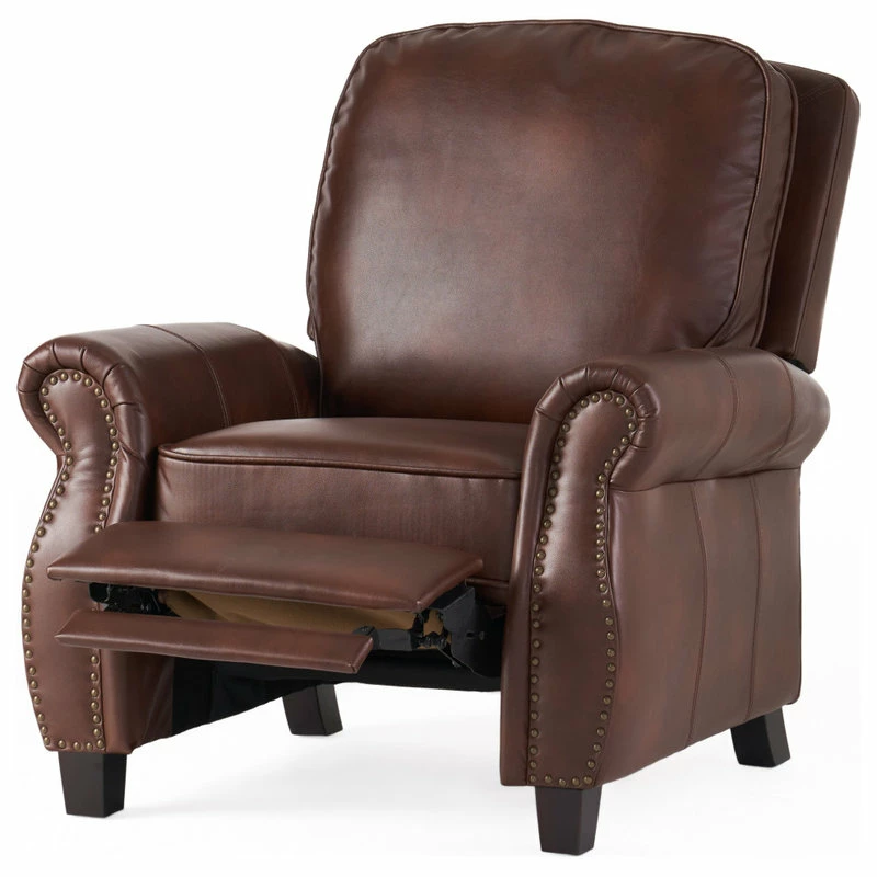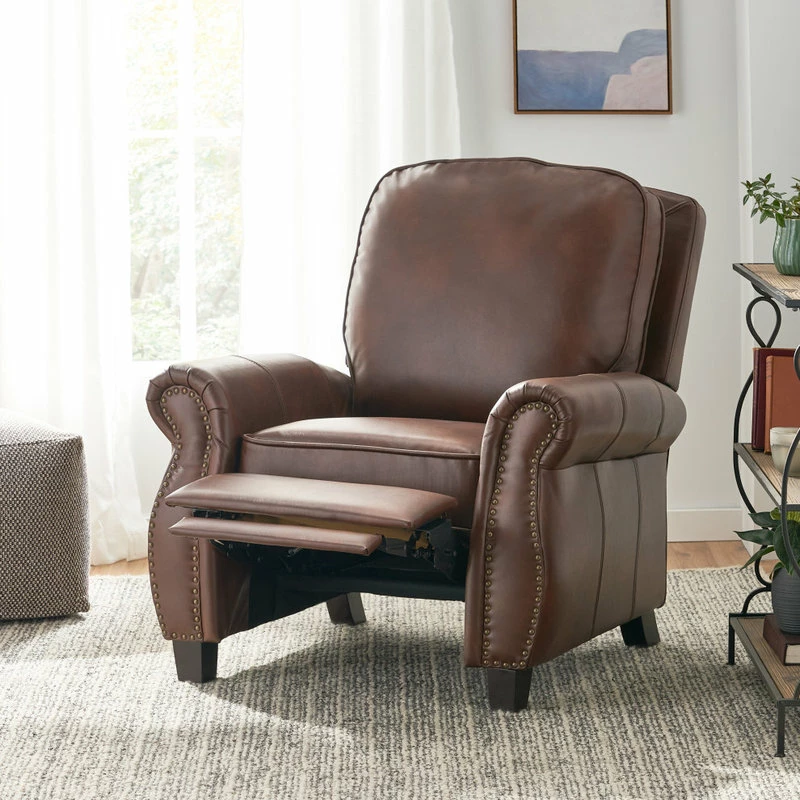 PUSH-BACK RECLINER: This recliner is a pushback recliner that allows you to lay back and relax after a long day. Simply use your body weight to push the chair back to recline and tilt your body weight forward and upwards to bring it back to the upright position.