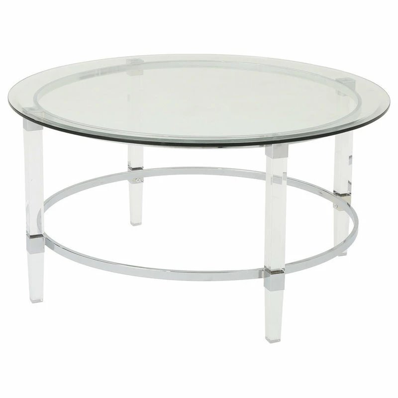 This round, translucent coffee table will set your whole living room revolving around. Offering a wide surface on which to display beautiful items, it also opens up the room and frees up space. Made from the highest quality materials,