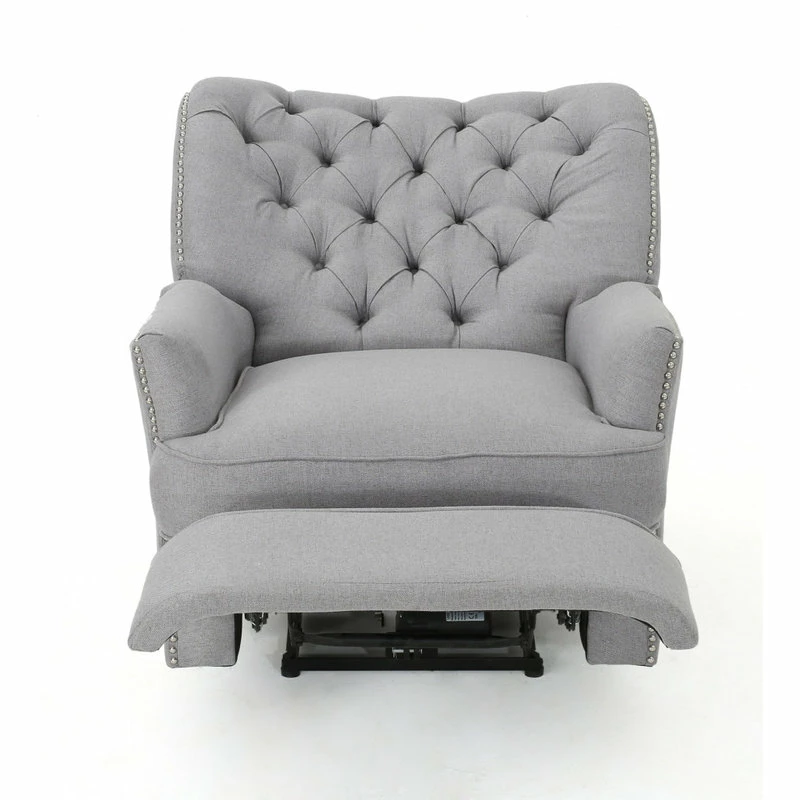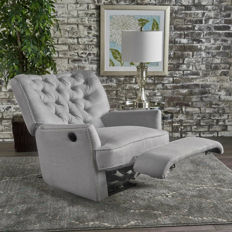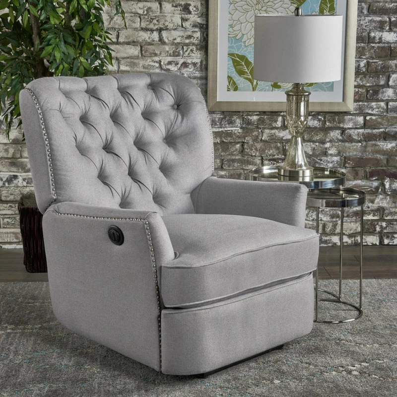 This tufted power recliner is a statement in comfort. Not only is this recliner plush and feature extra cushioning for maximum comfort, but the power base brings all of your lazy dreams to life. Relax without any effort and stand up with just as little effort. This will be the chair everyone wants to sit in.