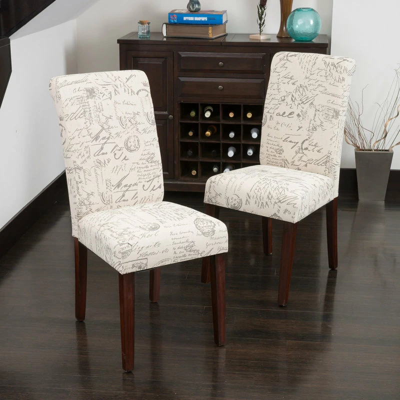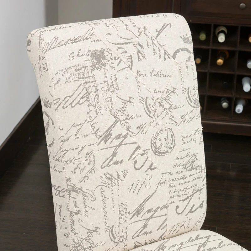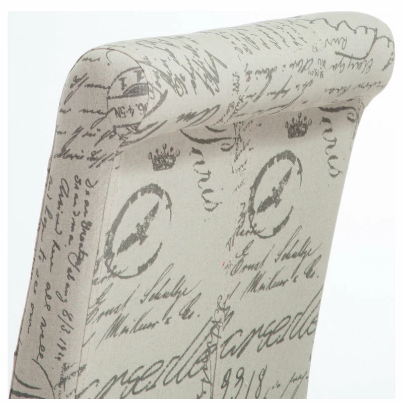 The Cosette’s French Scripted Linen Dining Chair features a solid hardwood frame in a classic armless chair style. The wood frame offers great stability while the cushion provides soft seating. Elegant French script brings a class and extra charm to any home dining area.