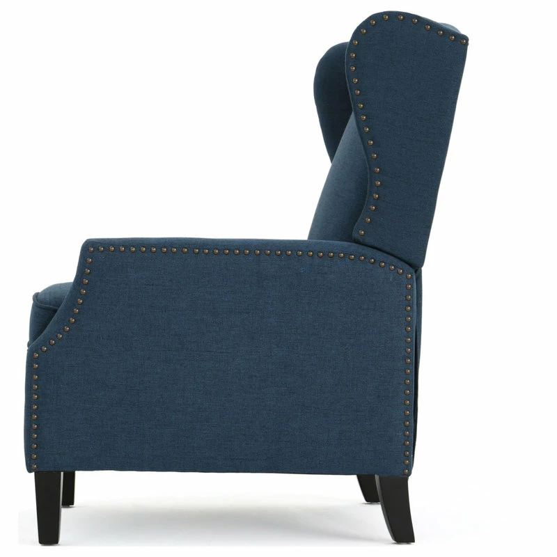 This wing back, traditional recliner is an ideal chair for any room in your home. Featuring a studded border on the sides, this recliner is both stylish and comfortable with its extra padded cushion. This recliner features smooth lines that complement any decor along with a soft color pallet.