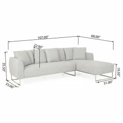 Bring home a fashionable flair to your living room space with the perfect centerpiece, giving your decor an upgrade in impeccable style. Our modern chaise sectional sofa set is the ideal addition to any living room with its sleek design, silver frame, and accent pillows. Featuring a luxurious chaise extension and stunning silver legs, this sectional acts as a streamlined statement piece that can change the whole flow of your living room while also allowing you to stretch out your legs in utmost comfort.