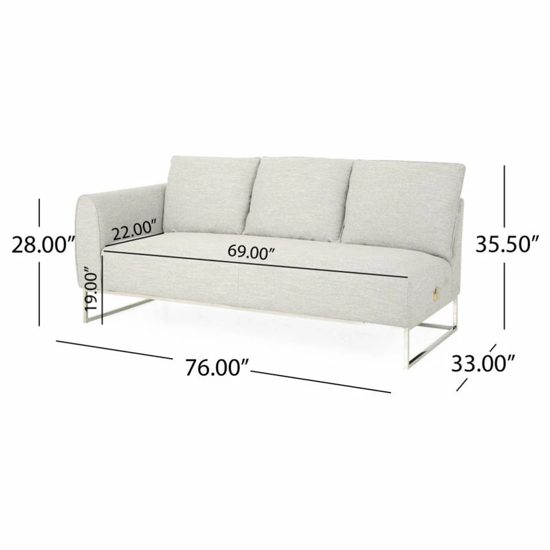 STAINLESS STEEL FRAME: The frame of this sectional consists of a steel material, making this incredibly durable and easy to maintain. Finished with a brilliant silver color, this frame emphasizes its modern style.