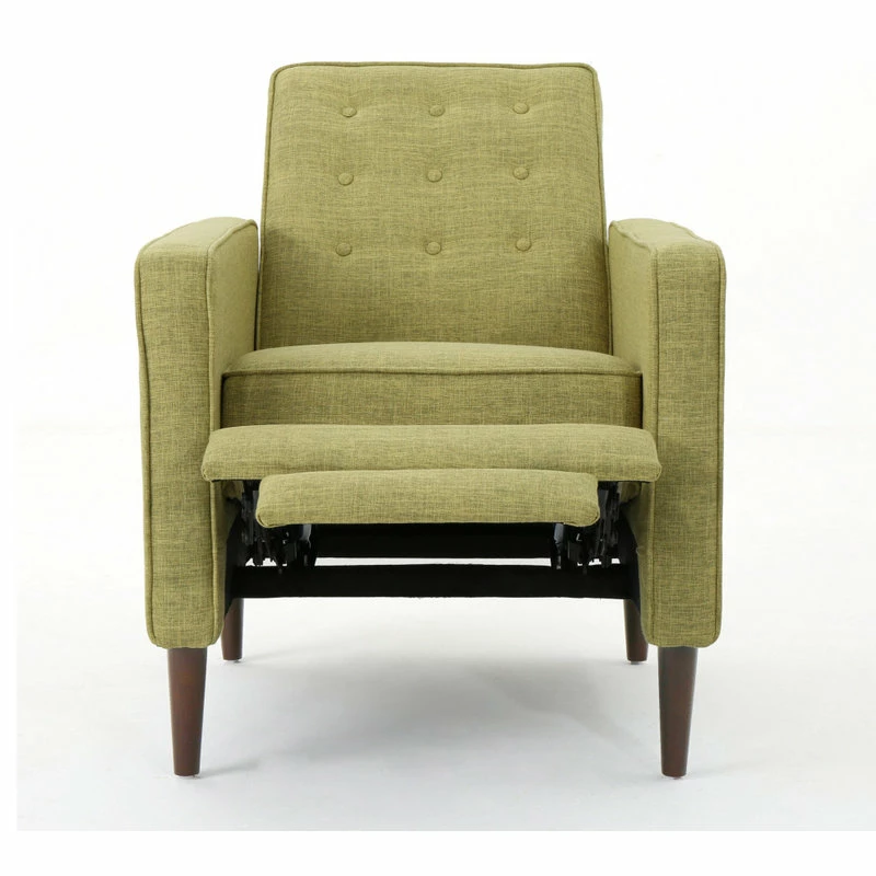 Looking for a place to prop up your feet and relax after a long day of work? Our mid-century modern recliners are a wonderful addition to any living room decor. Featuring clean lines and a smooth finish, these recliners offer you incredible comfort as well as sleek style. This is finished with lovely tapered legs for a sturdy structure and outstanding design. Complete with a beautifully button-tufted backrest and smooth upholstery for maximum comfort, these recliners will easily turn into your favorite place to unwind.