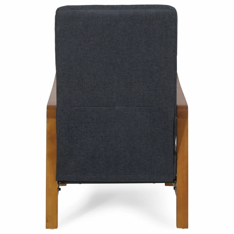 Redefine your living room with cozy comfort and outstanding style. Our convenient recliner chair provides an incredibly high degree of leisure in an attractive package, emphasizing a charming contemporary design with a mid-century modern twist. Featuring beautiful channel stitching and a rich wood frame, this recliner pairs perfectly with the push-back functionality allowing for high comfort with little effort. Sure to become the new favorite spot of leisure, you and your family will surely enjoy this recliner for years to come.;