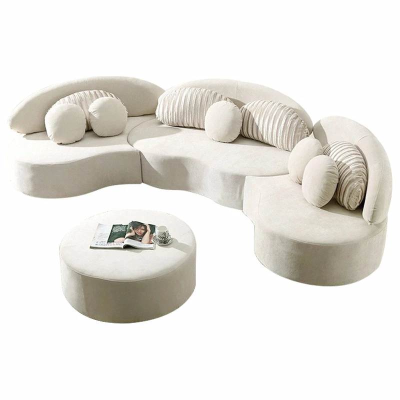 Attractive and cozy, this sumptuously three-piece sectional sofa is a great addition to update your home. Boasting a modern style, it features a lovely curved low back and warm beige hue for a stylish look. Comfortable high-density foam filler in the velvet seat and back cushions, it provides incredible comfort that you can’t help sprawling out on. Versatile layouts make it easier to fit in any existing decor. Comes with soft back cushions and throw pillows, it highlights the sophisticated look with a plush, cozy feel. While the matching ottoman offers great convenience for putting your feet up while watching the favorite movie. A perfect new centerpiece for your empty living room.
