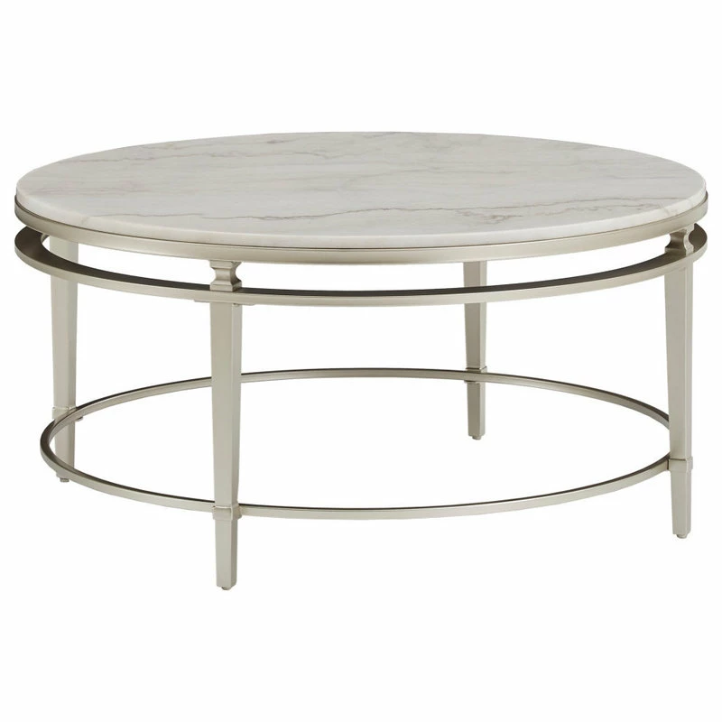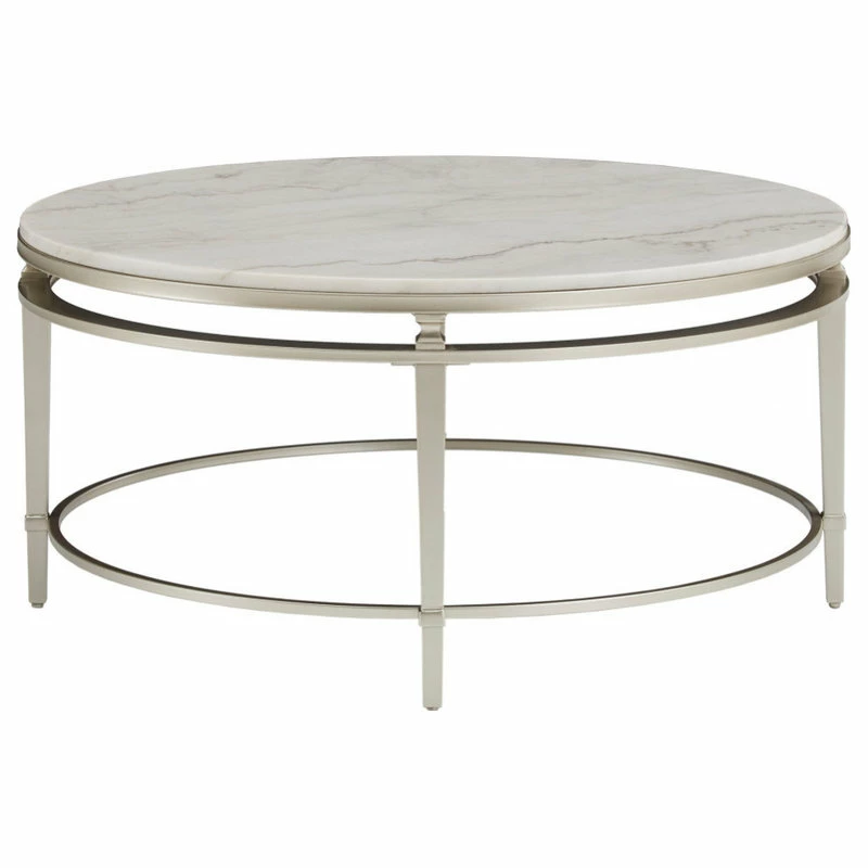 Take your living room to the next level of luxury with the Milroy Champagne Silver Finish Marble Top Coffee Table.This table features the pairing of a dazzling champagne silver frame with a beautiful marble table top. A sturdy metal tube construction ensures lasting support and durability for years to come.