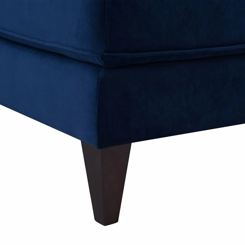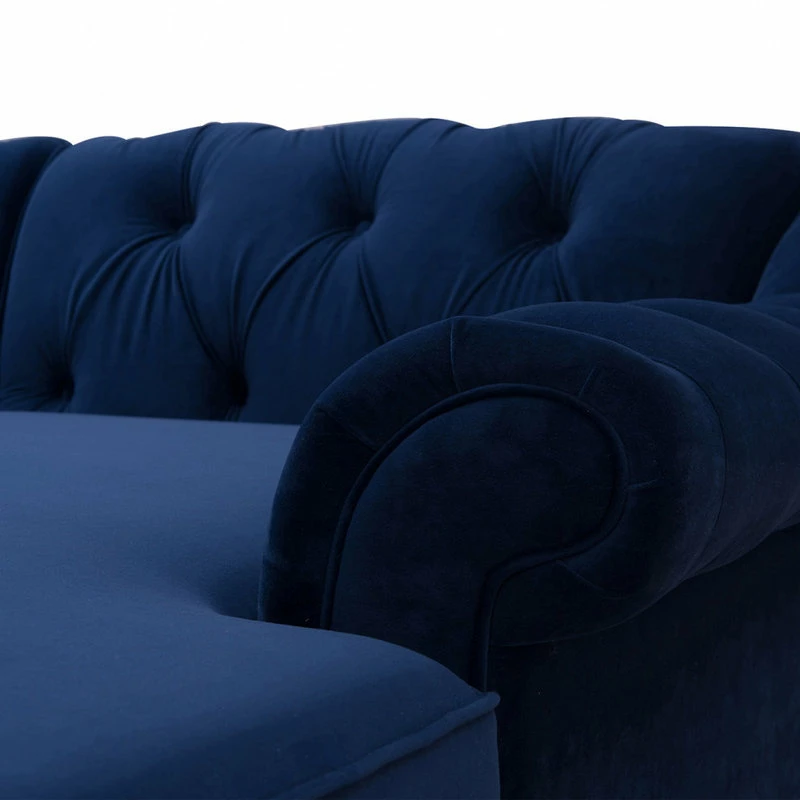 - Rolled arms and back in a Chesterfield sofa style with hand-pulled button tufting