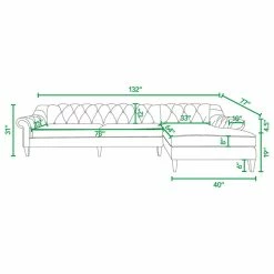 - Overall Dimensions: 132″W X 77″D X 31″H