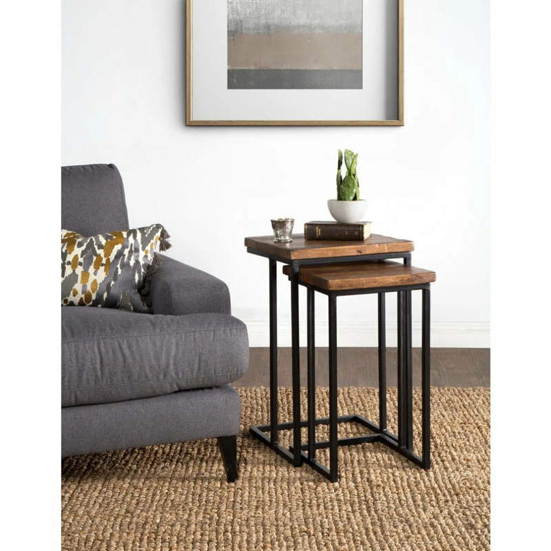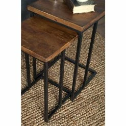 Add rustic convenience to any space with the Lynda solid wood and Iron Nesting Tables. Hand crafted from sustainable plantation grown solid wood and iron, these nesting tables are as beautiful as they are functional, with table space expanding or contracting as needed. The sustainably sourced solid wood is treated with a light finish that highlights the variations in the wood’s surface and adds to the table’s unique characteristics. The tables’ blend of warm-toned wood and an angular iron frame makes for a dynamic accent piece ideal for any space.