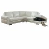 Providing the flexible option for relaxation, sleep and storage, the Elenor Collection will be a stylish and functional addition to your living room. Under seat storage is revealed with the pull of a tab on the end chaise. The lower portion of the seating configuration pulls out to reveal a pop up trundle that creates a bed space creating a relaxing environment with minimal effort. The collection is offered in blue or taupe fabric, both with contrast stitching.