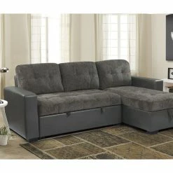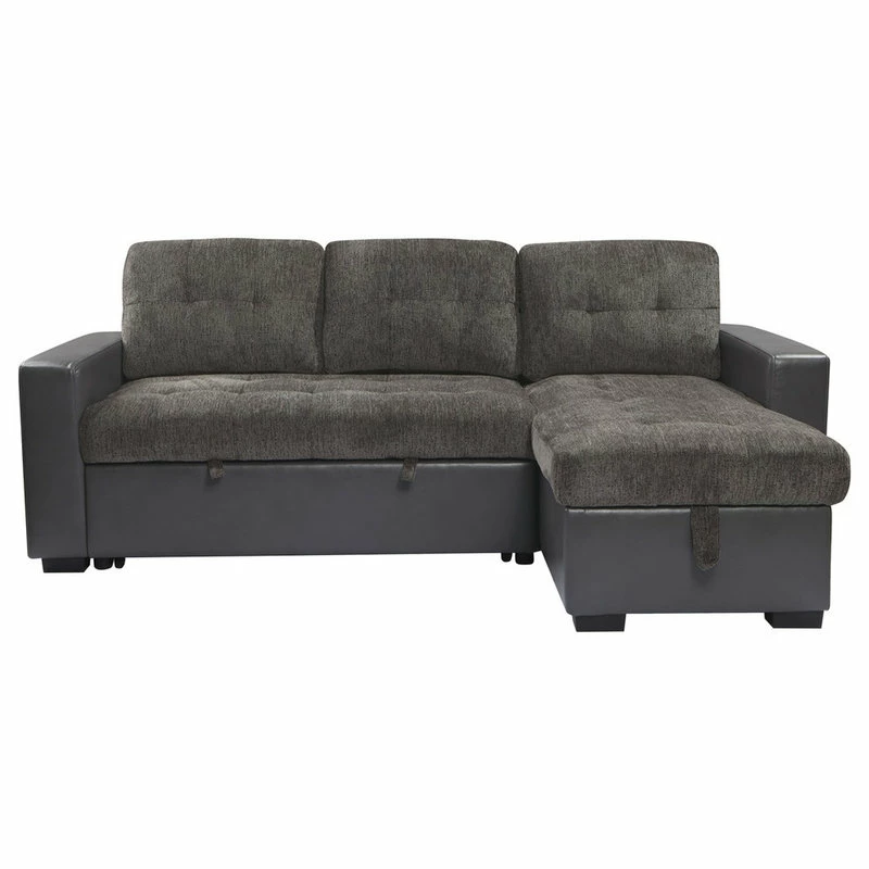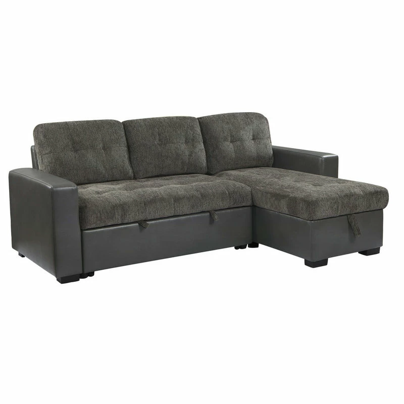 Customizable for your casual living room’s available space, the Fairhope Collection’s functionality goes beyond that of a traditional sofa. Covered in brown fabric and dark brown bi-cast vinyl accent, the transitional profile of this seating group is complemented by stitch tufting and track-style arms. Conveniently stored beneath the sofa is a pull-out trundle that rises to create a bed while the top of the attached chaise opens to reveal under-seat storage. The chaise can be configured as right or left side placement based on the needs of your space.