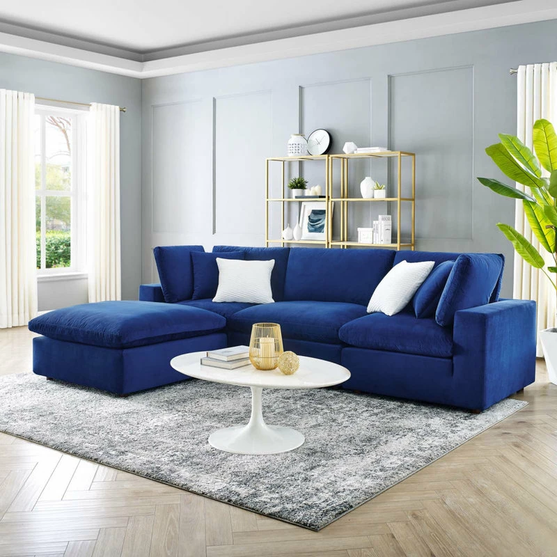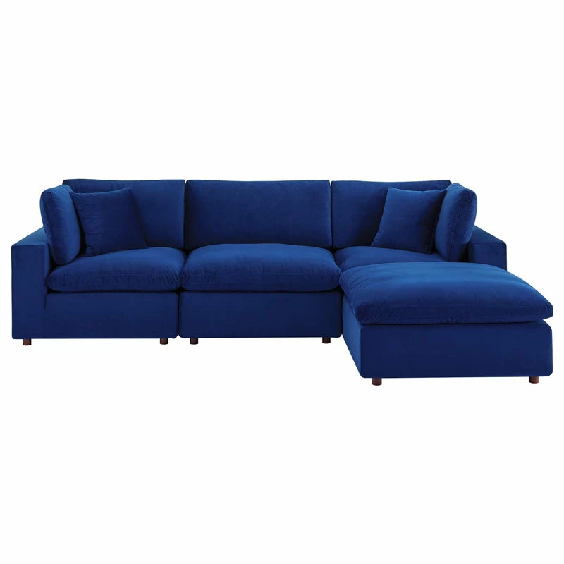 A haven for cozy relaxation, Commix features plush comfort, clean-lined design, and spacious profile, that makes an attractive statement in the modern home. Covered in stain-resistant performance velvet, this upholstered sectional sofa comes with a solid wood construction and foam padded and duck down cushions for a luxurious sink-in feel. Commix features overstuffed down feather cushions that offer a feeling of relaxation and calming comfort while lounging, making it the perfect addition to the living room, family room, or game room. Made for sprawling out or curling up, Commix beckons you and guests to sit and stay a while. Includes plastic foot glides. Weight Capacity Each Chair: 331 lbs.