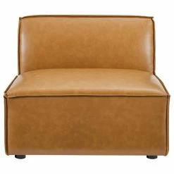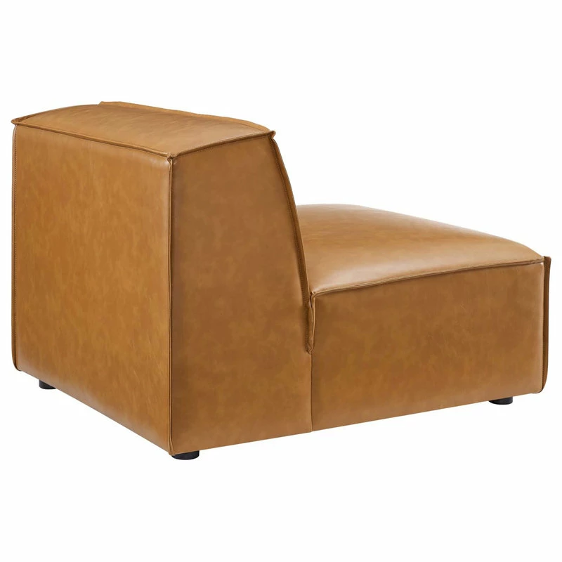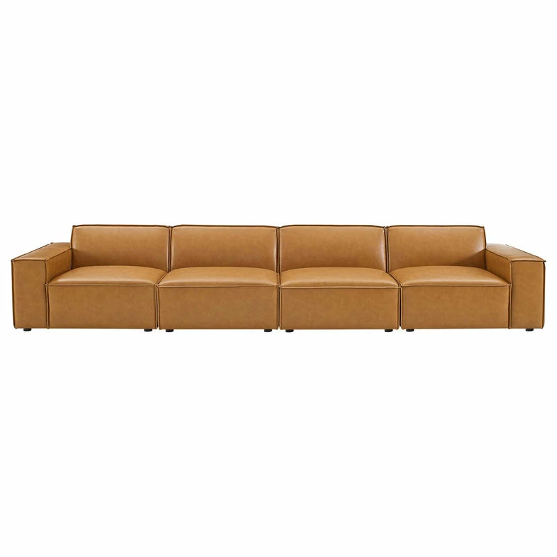 Create your custom living room and lounge area with the Restore Vegan Leather Sofa. This four-piece sofa appeals to minimalist elegance with a crisp design and broad lines accented with French piping details and vegan leather upholstery. Dense foam padding and a pocket coil spring system in the cushions offer a luxe seating experience for your living room and lounge. The Restore Living Room Three-Seater Sofa is solidly constructed from plywood and wood with non-marking foot caps to protect flooring and connectors between modular pieces. Each Chair Weight Capacity: 440 lbs.