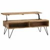 The two tone antique white and brown create a casual appeal. The occasional feature planked table tops with heavy tapered legs and bottom shelves. The cocktail is castered so perfect for motion upholstery.