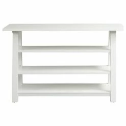 Accent your space with the Summer House sofa table. Crafted of poplar solids, this piece features an oyster white finish, a modernized open shelf with solid wood concept perfect for display items and d�cor, planked top, and is anchored by block legs. This stylish piece is sure to introduce an eclectic feel to any home.