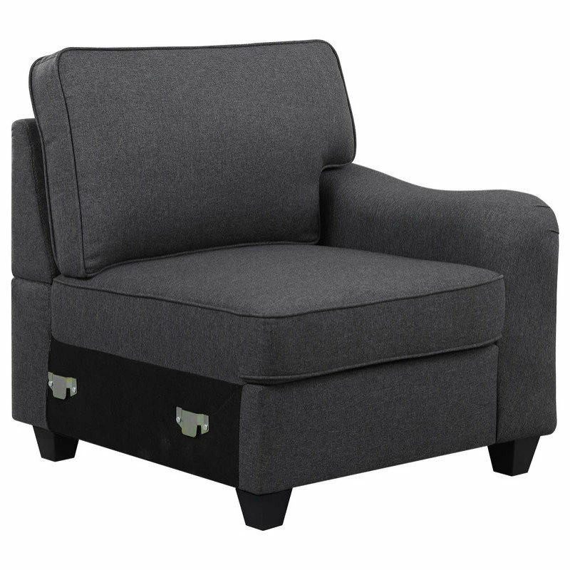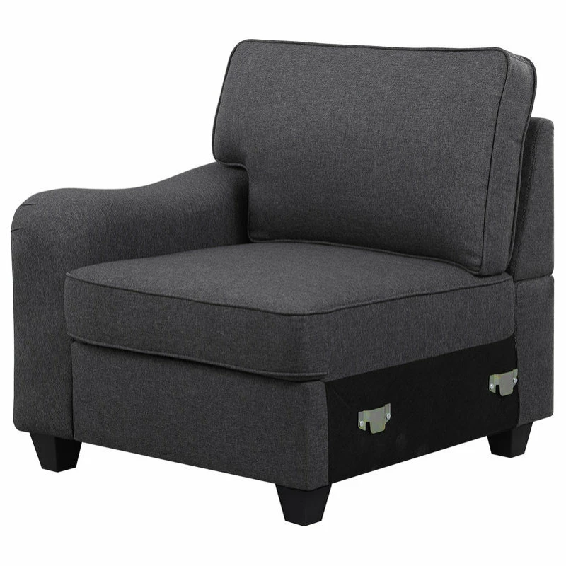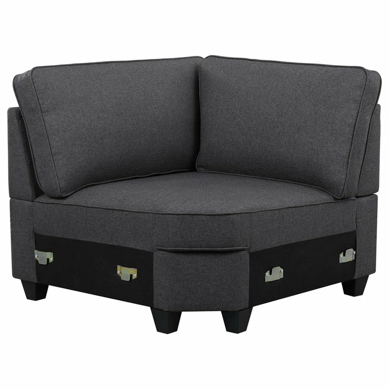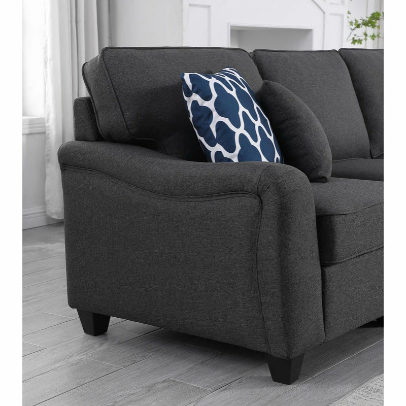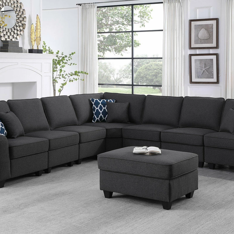 Comfort, Style, and Quality! These are the important features for the Leo Collection. This beautiful 8-piece modular reversible L-shape corner sectional couch with ottoman will fit into any living room and impress your guests! The comfortable dark gray linen fabric with matching accent pillows will light up your living room with the most trendiest of looks. The size will allow you to welcome multiple guests where everyone will be able to enjoy entertainment together.