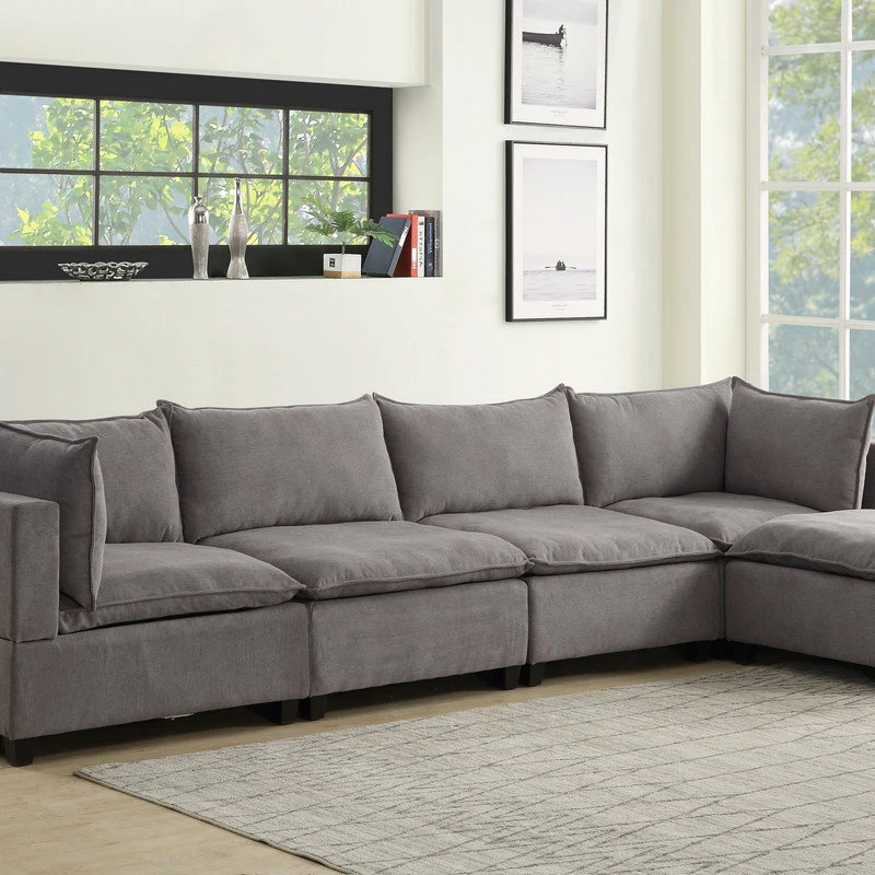 Sit back and relax in the Madison Collection! Crafted from solid wood and fine fabrics, this spacious modern contemporary style reversible modular sectional sofa with ottoman will welcome you and your guests to enjoy your activities with style and comfort. Featuring down feather filled cushions, pocket coil and foam seating, and quality woven fabric, this European Style living room set offers a timeless look and is the leader of furniture trends.