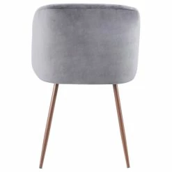 Surround your dining table with the beauty of the Fran Dining Chair. Featuring a sophisticated velvet upholstery that will tie in perfectly with your contemporary decor, this ultra comfortable padded bucket seat is complemented by tapered walnut wood legs. Available in either blue or grey, choose the color that ties in with your decor!