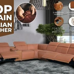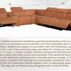 Enjoy modern style and top-notch relaxation with this Italian Leather Reclining Modern Sectional. This beautiful sectional features comfortable seat cushions, plush back and headrest, pillow arms, and Genuine Italian Leather upholstery. The elegant design and exquisite cushioning provide perfect comfort that will keep you cozy, and the extra padded arms add the perfect finishing touch. This Reclining sectional will transform your living room with its modern design. It displays an aesthetically pleasant linear design with chrome accents to foster sophistication. A great way to convey simple luxury in any room. Mindfully designed with gentle arms, & plush high density seat cushions for maximum comfort, this masterpiece is a delightfully distinguished mix of functionality and style. The chrome legs effortlessly elevate any room with a touch of contemporary design.