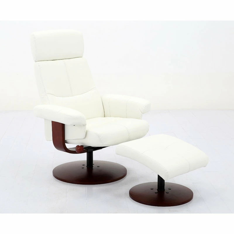 With the Comfort Chair Collection you get to experience the European seating comfort and design within the surroundings of your own home! With features like solid hardwood frames, combined with heavy tubular steel construction the quality is in place to support the structure and durability. Each model includes adjustable recline, 360 degree swivel and height adjustable headrest. In order to maintain the proper circulation, the foam seating is placed in multiple layers within the cushions which allow them to support you in the areas needed. Therapeutic designs are directed towards the comfort of the chair with multiple reclining positions by the adjustment of a tension handle. This model is covered in a quality polyurethane “White” cover and complimented with a “Walnut” wood frame finish. Between the design of your body and the multiple adjustments of the chair, you can maximize the experience of personal comfort.