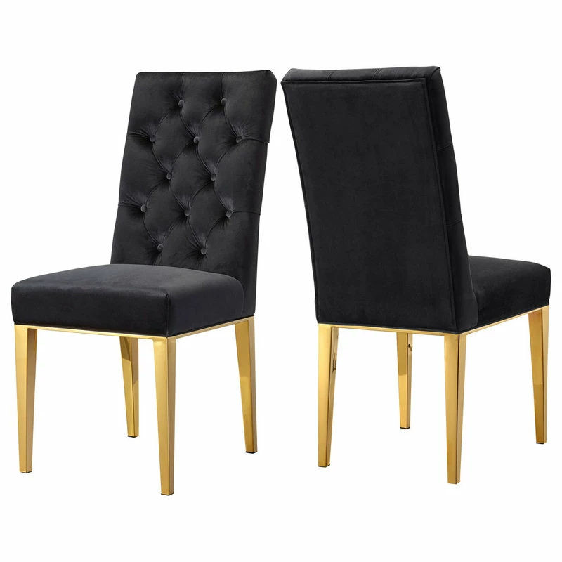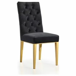 Refresh your tableside seating with the Capri Velvet Dining Chairs. Highlighted by tufted velvet upholstery and gold-plated stainless steel bases, these chairs update a traditional design that’s fit for the modern home.