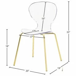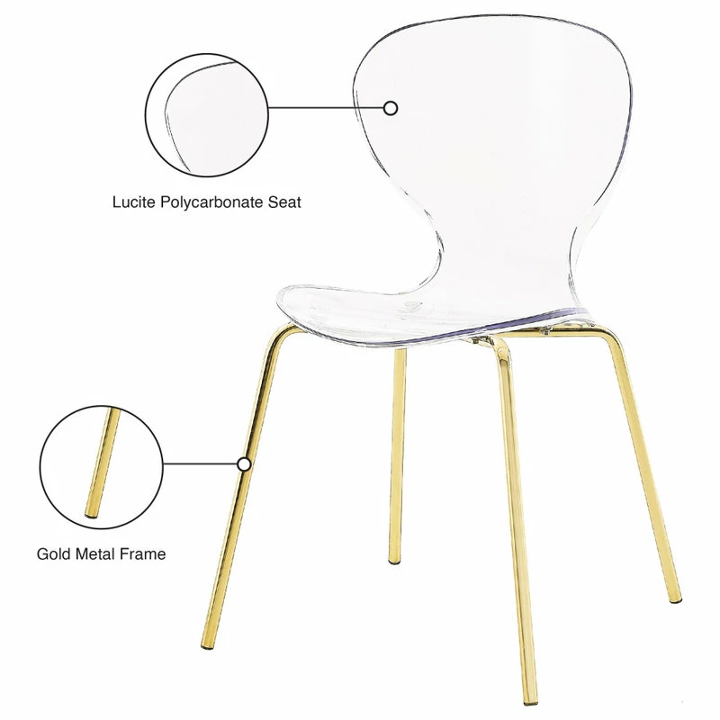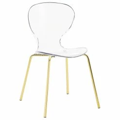 Infuse modernity into your dining room with this Clarion dining chair. A translucent seat and back add a bold and contemporary look to your space while relying on the strength of Lucite polycarbonate to ensure sturdy strength and resilience. A classic metal base with a luxe gold finish contrasts nicely with the translucent top, giving your room a modern vibe that’s hard to ignore yet basic and simple at the same time.