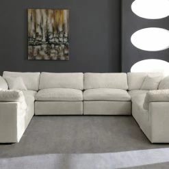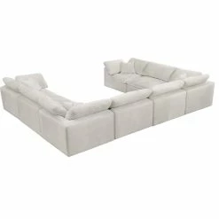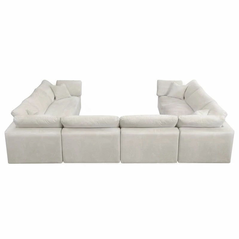 Bring home this Cozy 8-piece sectional for a fresh new look. Embrace casual elegance with this Cozy velvet cloud-like comfort modular fiber-filled seating option. Handsome from all angles, this piece features soft cream velvet upholstery to make it an easy fit in any room. This modular piece can be combined with other items in the Cozy collection to create a seating group of your dreams. The cushions on this piece are exceptionally comfortableand filled with fiber for luxury that you deserve as you rest and relax.