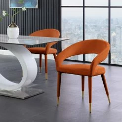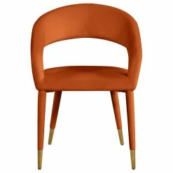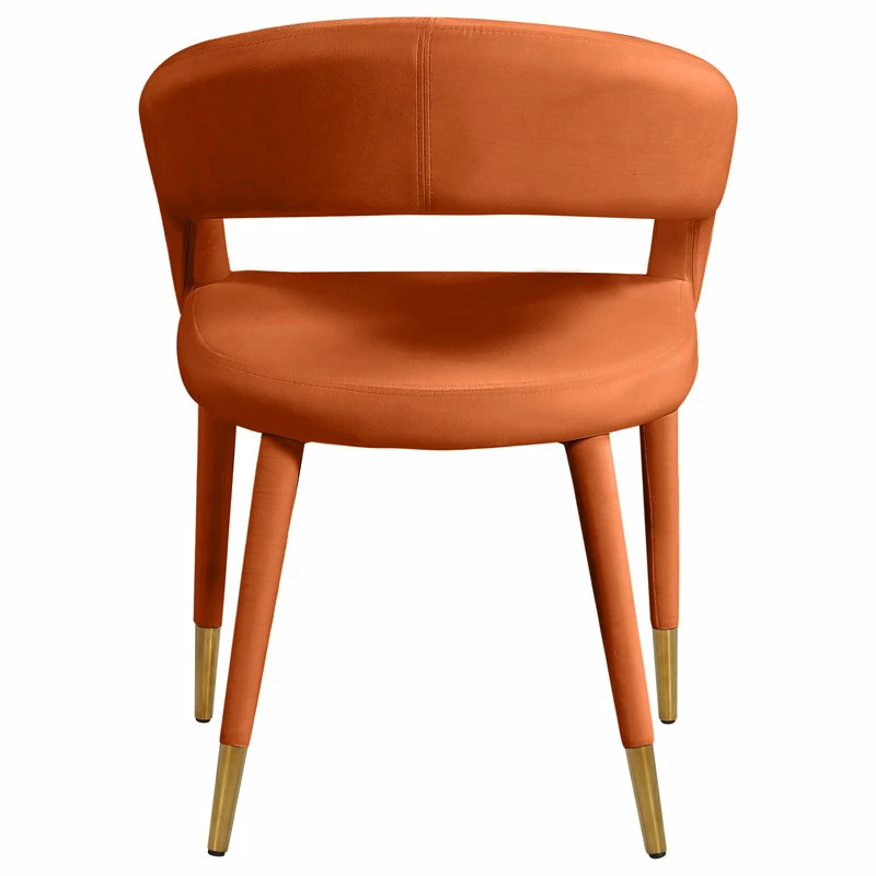 Elegant and eye-catching, the stunning Cognac Velvet Destiny Dining Chair from Meridian Furniture is the perfect addition to any space.