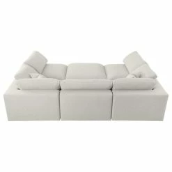 There’s lots to love about the Serene linen textured deluxe cloud-like comfort modular collection, and this piece is not an exception. The soft cream linen textured fabric is cozy and sleek to the touch while the overstuffed down/feather cushions provide gentle support so you can relax and unwind like a VIP. Customize your seating with this modular set by adding the pieces you like most. Latches under each piece make it easy to snap them into position for a look that’s modern yet welcoming.