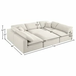 - Overall Dimensions: 119″ W x 80″ D x 32″ H
