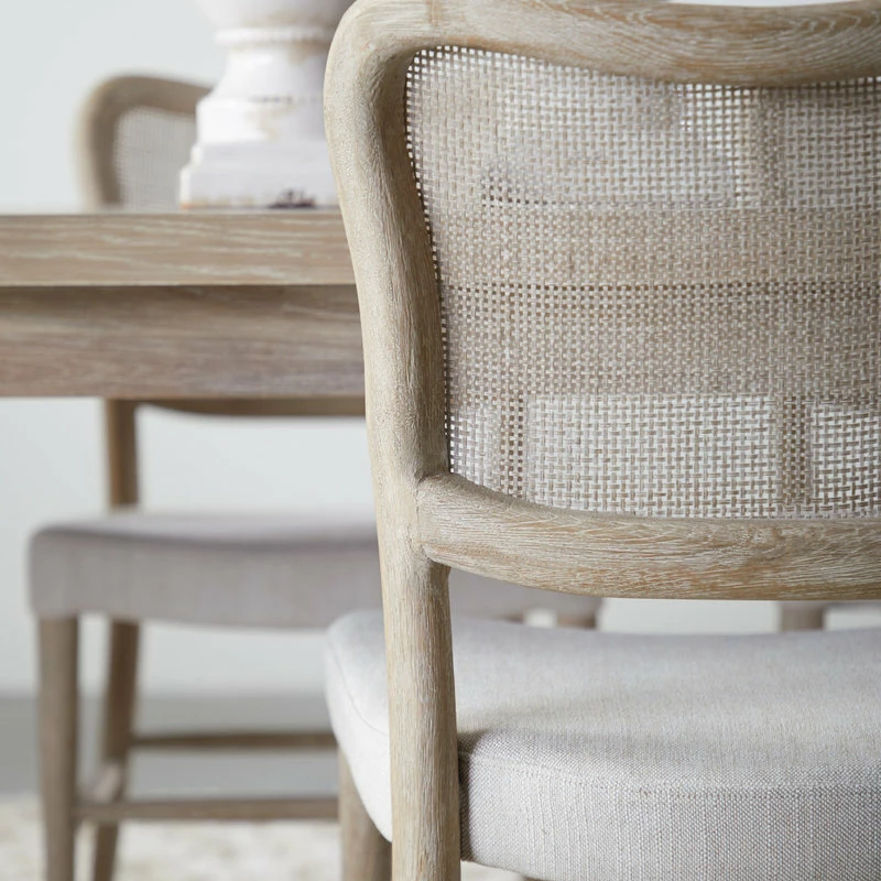 Can you hear the waves crashing? Or smell the salt in the air? If not, the Shoreline can help with that. This transitional dining chair feels like it just washed ashore and was handcrafted especially for you and your guests. Its solid wood frame outlines a thin cane back and plush upholstered seat with a linen finish for peak relaxation. If you favor an airy, organic aesthetic, take a seat and start listening for those waves.