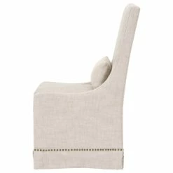 Lean into the graceful curves of the Genevieve dining chair – the pinnacle pairing of supreme comfort and mid-century style. Accented with classic nailhead details and upholstered in a luxurious 100% Bisque French linen (that beautifully drapes down to the floor, by the way), the Genevieve is destined for fine dining around the table come holidays, weekdays, or any day that calls for a fresh meal. From hosting a dinner party to enjoying a quiet meal at home, trust the Genevieve will add a dose of tasteful elegance to any occasion.