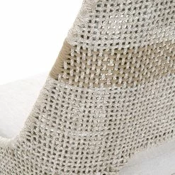 Transitional style dining chair featuring solid Mahogany frame, an interwoven Taupe & White Flat Rope design, and Pumice Fabric
