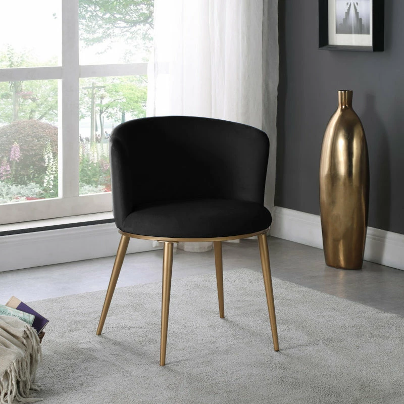 SKU: 965Black-C Category: Dining Chairs Tags: Brushed gold iron legs, Comfortable, Contemporary, Contemporary design, Elegant, Furniture, Modern, Rounded back, Soft black velvet