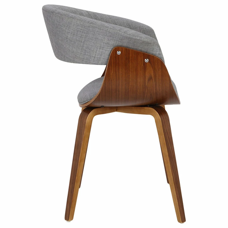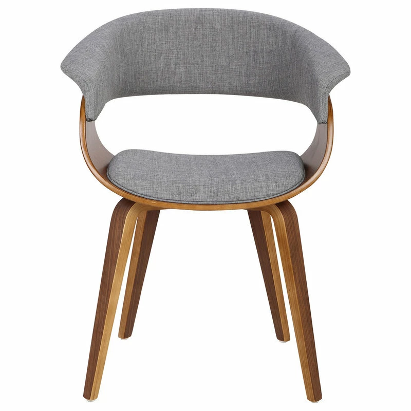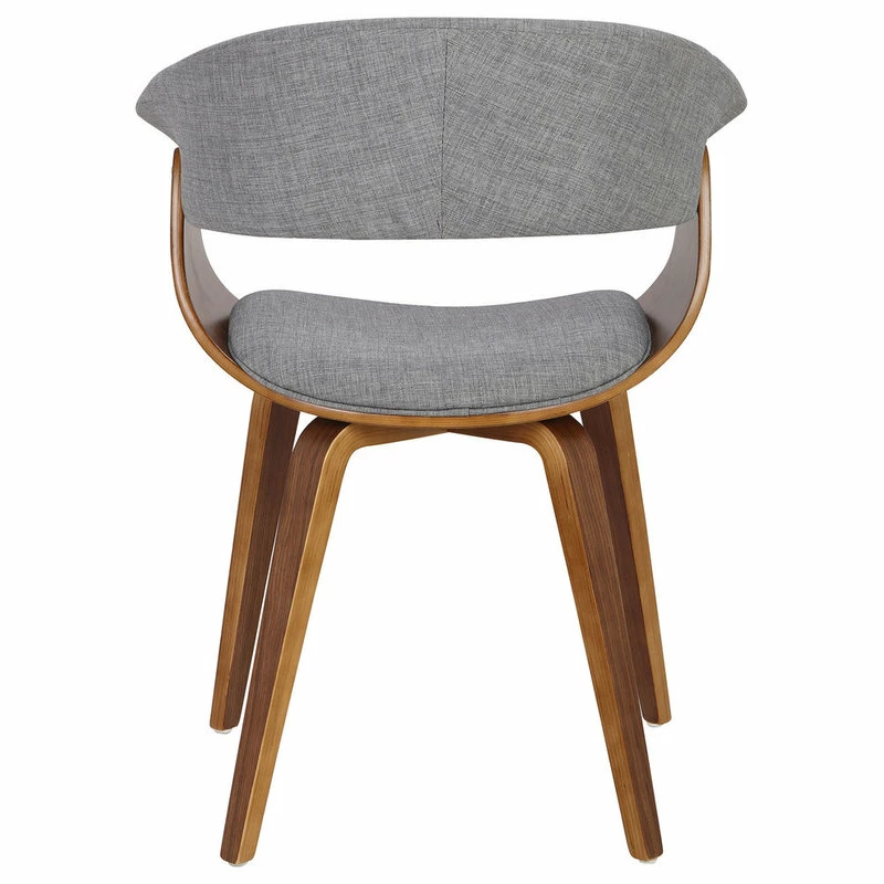 Bend the rules and break the mold with the Antonia. A swanky showstopper in the den or the dining room, this mid-century chair will have your guests doing double-takes as soon as they walk in. Curved wood accented by a fabric, cushioned seat and wraparound backrest offer both comfort and style. Stylishly exposed bolts and arched walnut legs round out its look to make for a unique piece thatโs nothing short of a knockout.