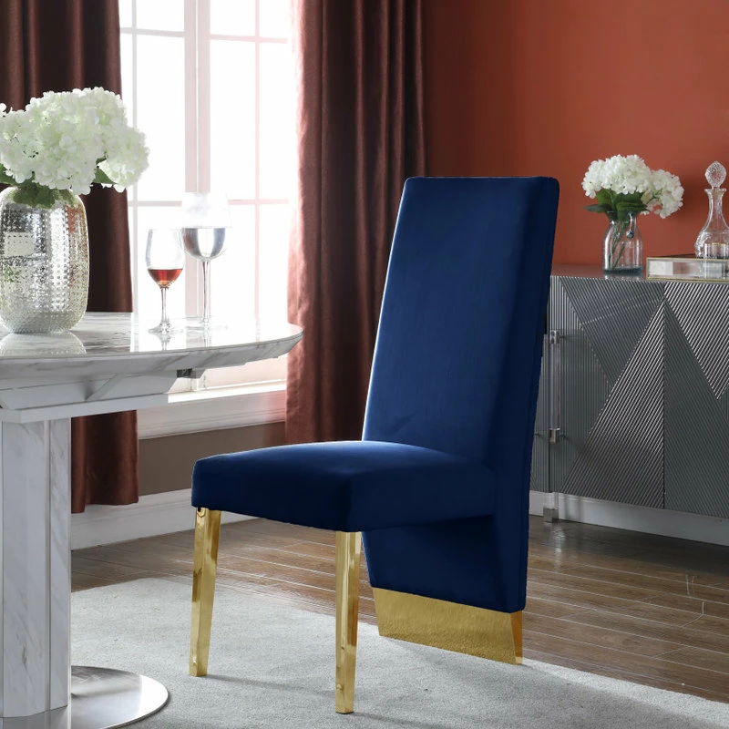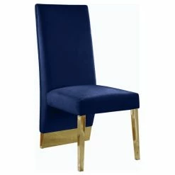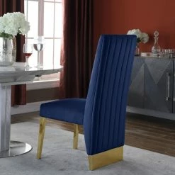 SKU: 755Navy-C Category: Dining Chairs Tags: Channel tufted design on back, Comfortable, Contemporary, Dining chair, Gold, Luxurious, Luxurious navy velvet, Meridian furniture, Modern, Navy, Nice, Porsha, Porsha navy velvet dining chair, Rich gold metal legs, Set of 2, Sturdy, Velvet