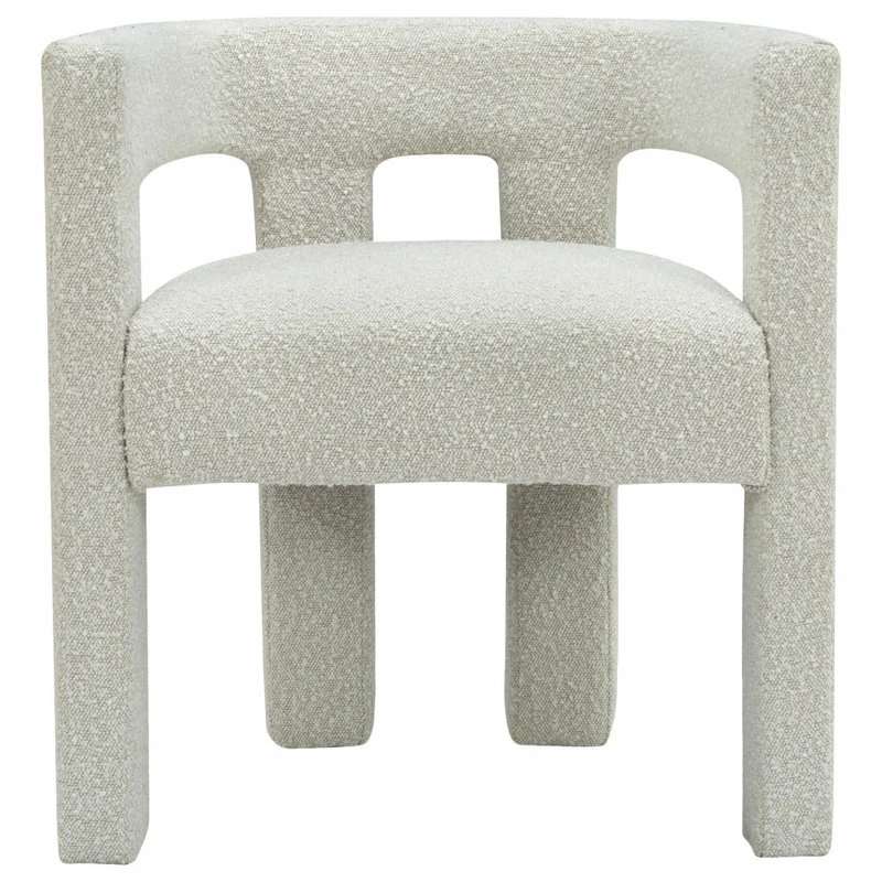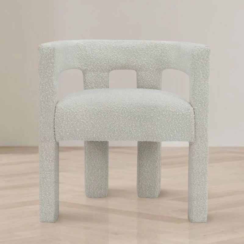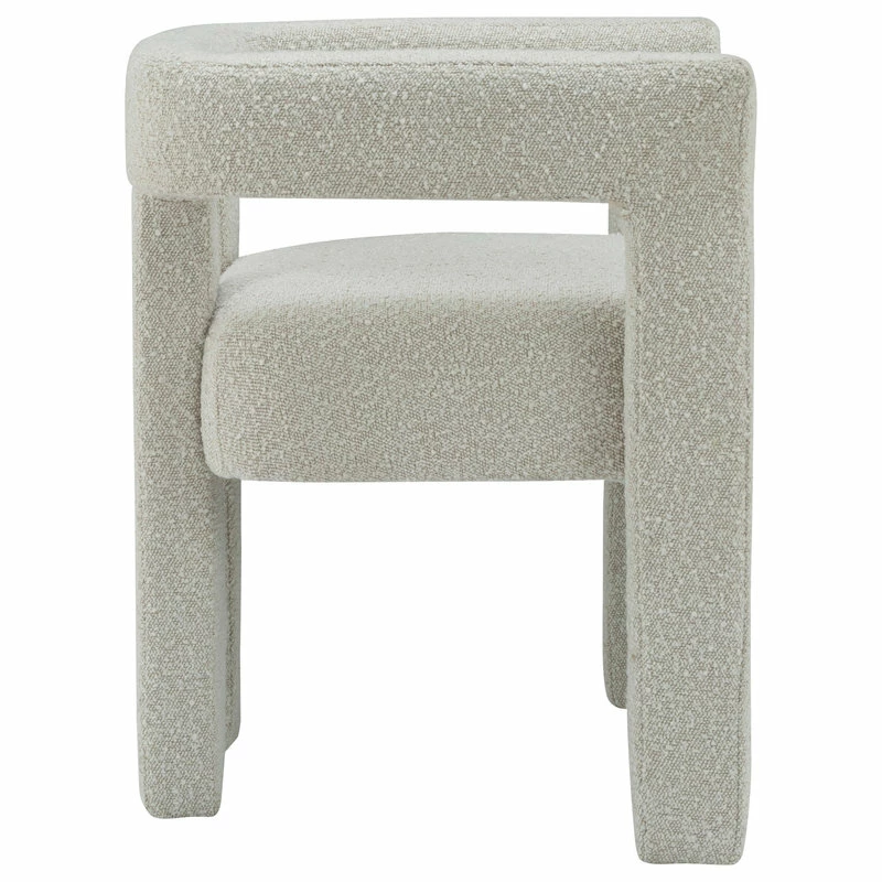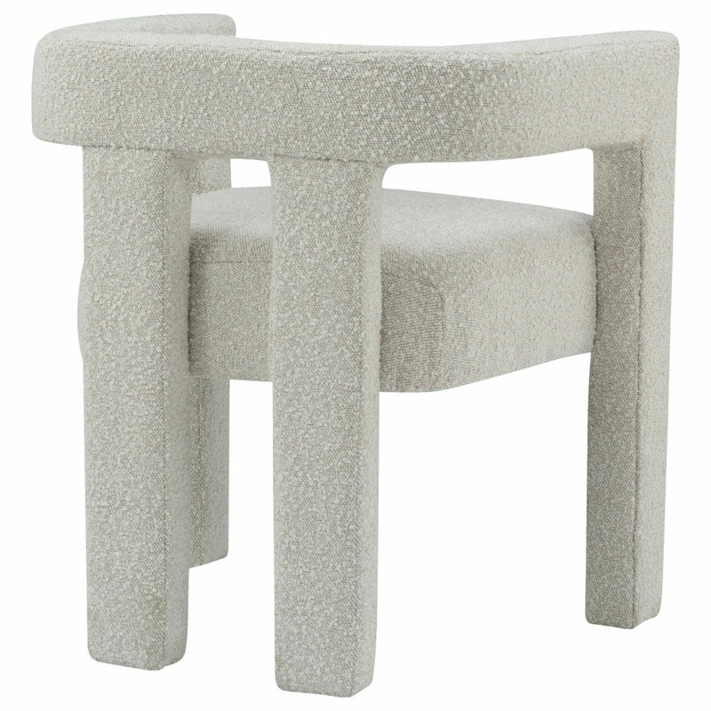 Get comfortable with this Athena dining chair featuring minimalistic design elements and a simple footprint. Artfully designed, this dining chair is made for comfort with a rounded footprint that hugs your back while you sit and relax with friends. The chair is covered top to bottom in rich cream boucle fabric, so it’s super soft to the touch and elegant to the eye.