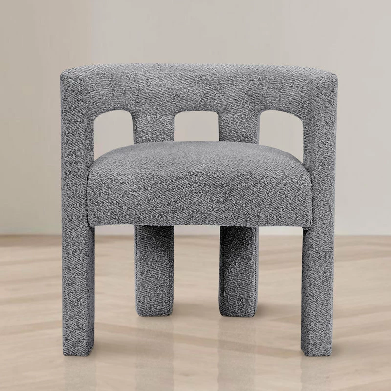 Get comfortable with this Athena dining chair featuring minimalistic design elements and a simple footprint. Artfully designed, this dining chair is made for comfort with a rounded footprint that hugs your back while you sit and relax with friends. The chair is covered top to bottom in rich grey boucle fabric, so it’s super soft to the touch and elegant to the eye.