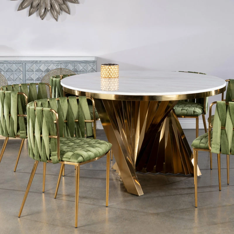Looking for something truly new and “wowโ-worthy? The Eterno dining chair is at your service. Its elegant, gold-finished frame peeks in and out of its woven, thick-cut velvet upholstery. This work of art is stylish, elevated, and above all comfortable thanks to its curved back and cushioned seat. To make a statement your guests wonโt soon forget, make way for the Eterno.