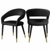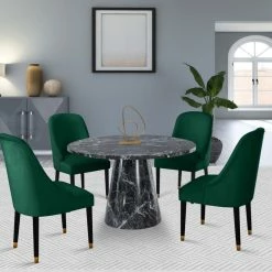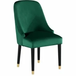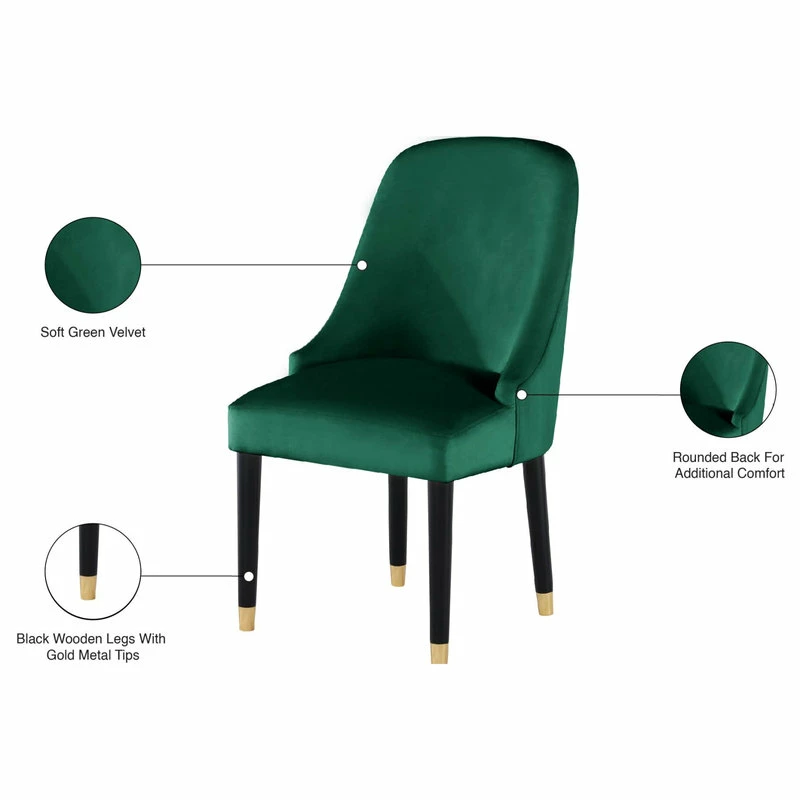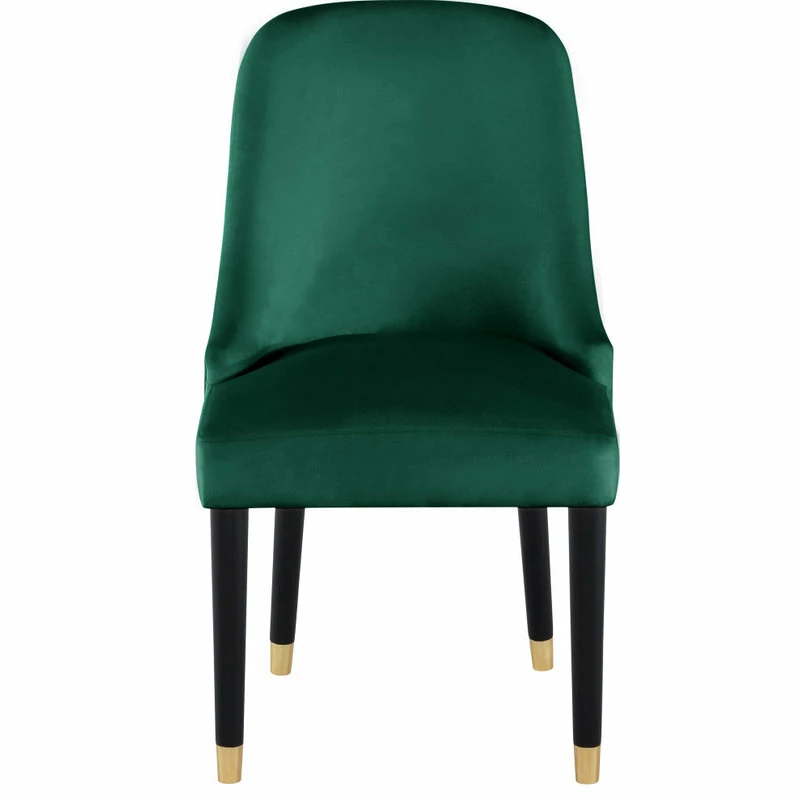 Turn back the kitchen clock with the Maisie. This mid-century dining chair is what happens when retro flair gets an updated dose of luxury. Elegant velvet wraps around its curved back, low-profile armrests, and well-cushioned seat while its sleek legs are punctuated with gold metal tips. A showstopper in any dining room, it has just enough flash to stand out with more than enough comfort to settle in.