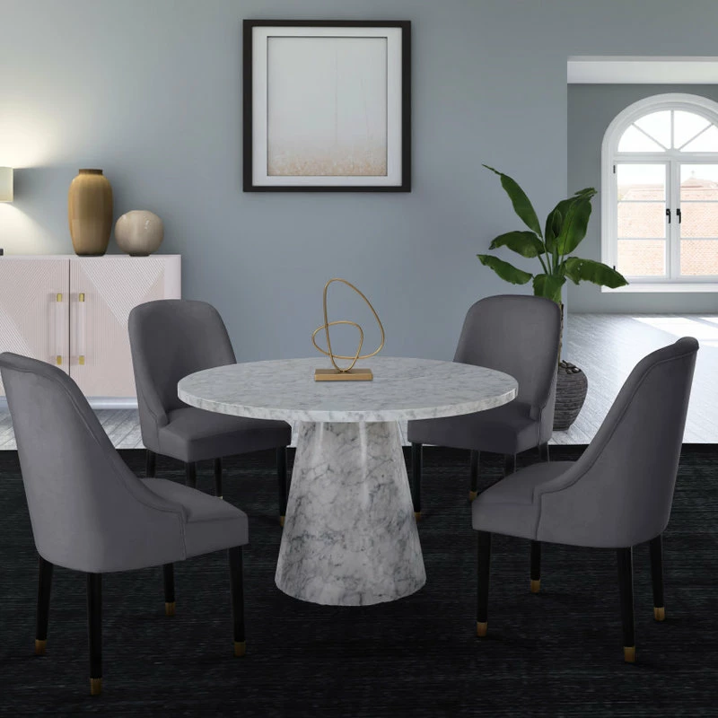 Turn back the kitchen clock with the Maisie. This mid-century dining chair is what happens when retro flair gets an updated dose of luxury. Elegant velvet wraps around its curved back, low-profile armrests, and well-cushioned seat while its sleek legs are punctuated with gold metal tips. A showstopper in any dining room, it has just enough flash to stand out with more than enough comfort to settle in.