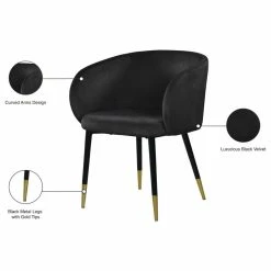 SKU: 733Black-C Category: Dining Chairs Tags: Black, Black metal legs with gold tips, Comfortable, Contemporary, Contemporary design, Dining chair, Louise, Louise black velvet dining chair, Luxurious, Luxurious black velvet, Meridian furniture, Modern, Nice, Sturdy, Velvet