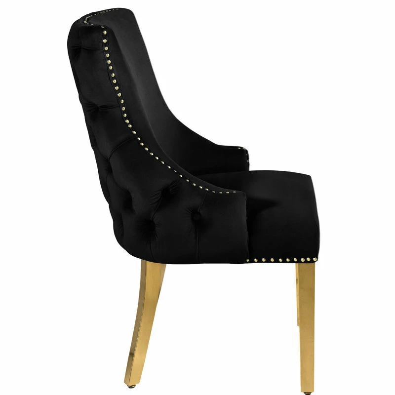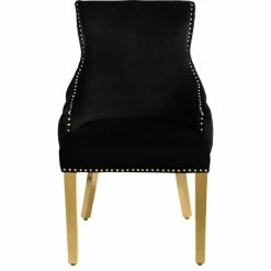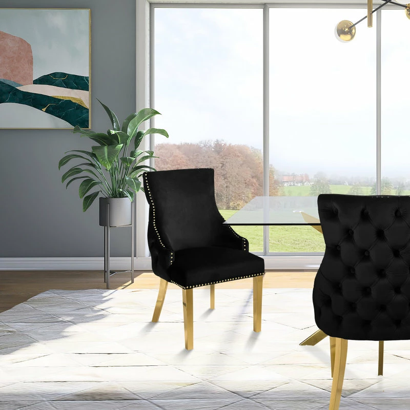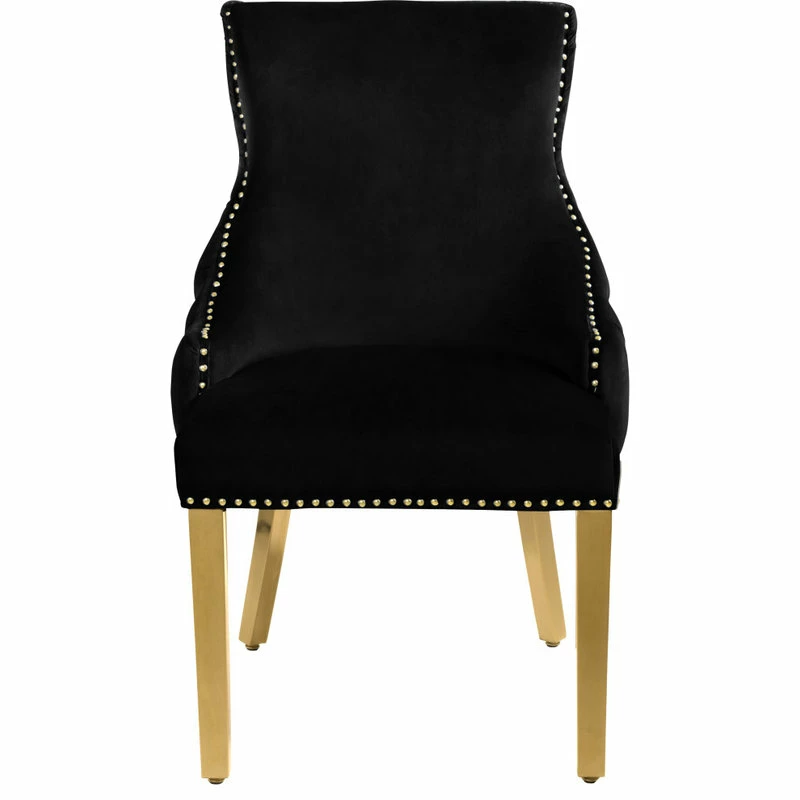 Introducing: its majesty, the Sovereign dining chair. It’s no question that when it comes to dining royalty, this chair is the last word in luxury. With a cushioned seat and gold nailheads that trace the perimeter like a dazzling crown, itβs no wonder it reins supreme. Revel in the tufted back and enjoy not one, but two, plush and polished pieces to consider your in-home thrones.
